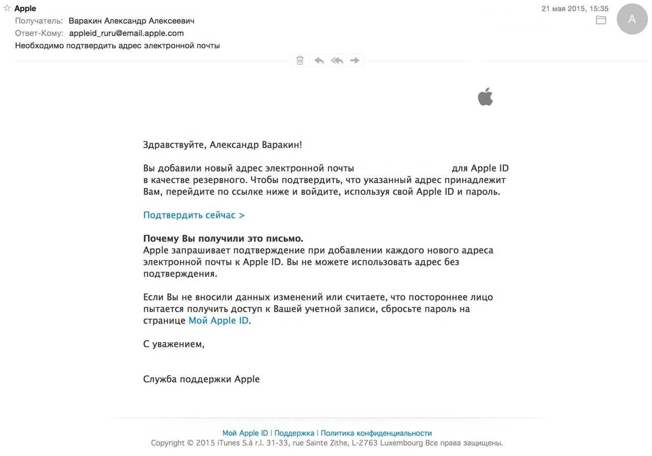 - Подтвердите новую учетную запись на почте и введите новые данные на ваши устройства Apple.