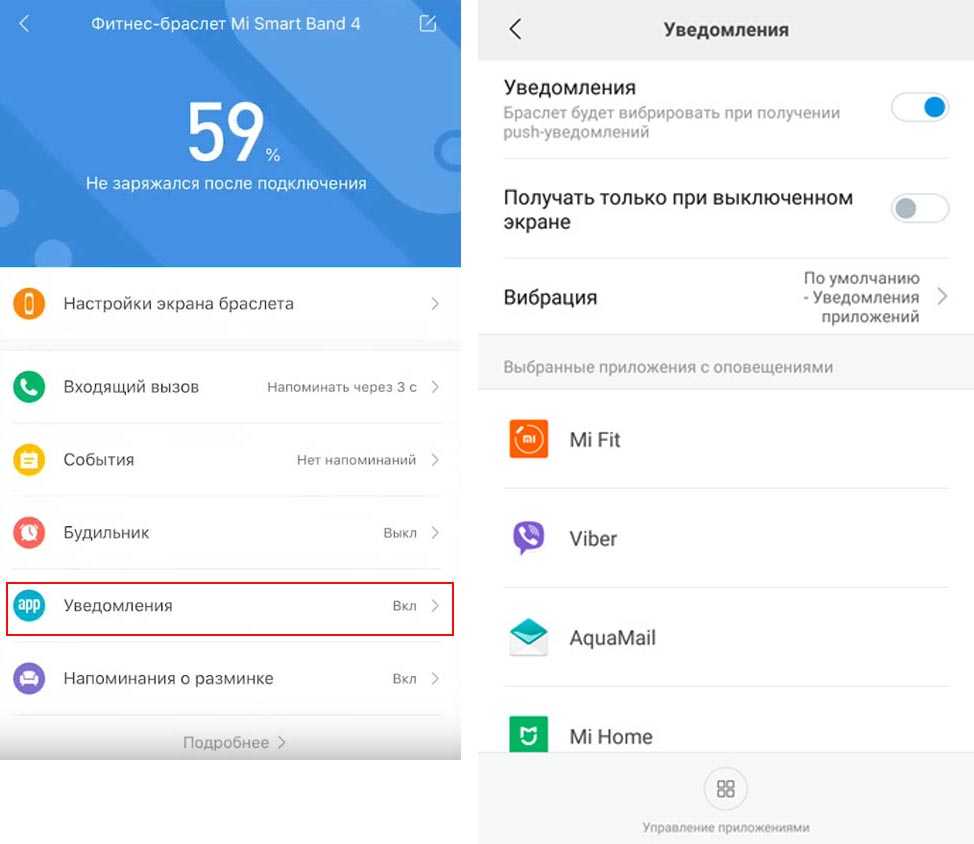 Обратите внимание на строку «Получать только при выключенном экране». Если вы активируете эту функцию, тогда будете получать уведомления в Xiaomi Mi Band 4 только в том случае, если экран смартфона заблокирован