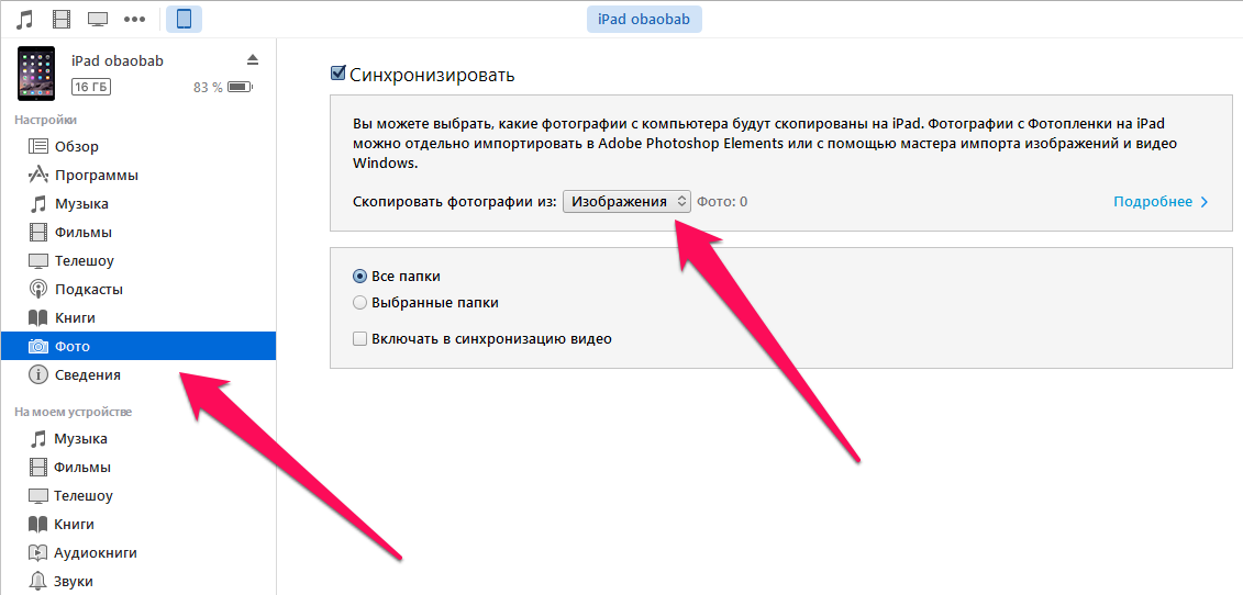 Как передать фотографии с компьютера на iPhone или iPad при помощи iTunes