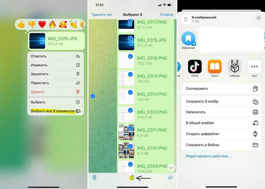 - Далее на iphone открываете Telegram и переходите в Избранное