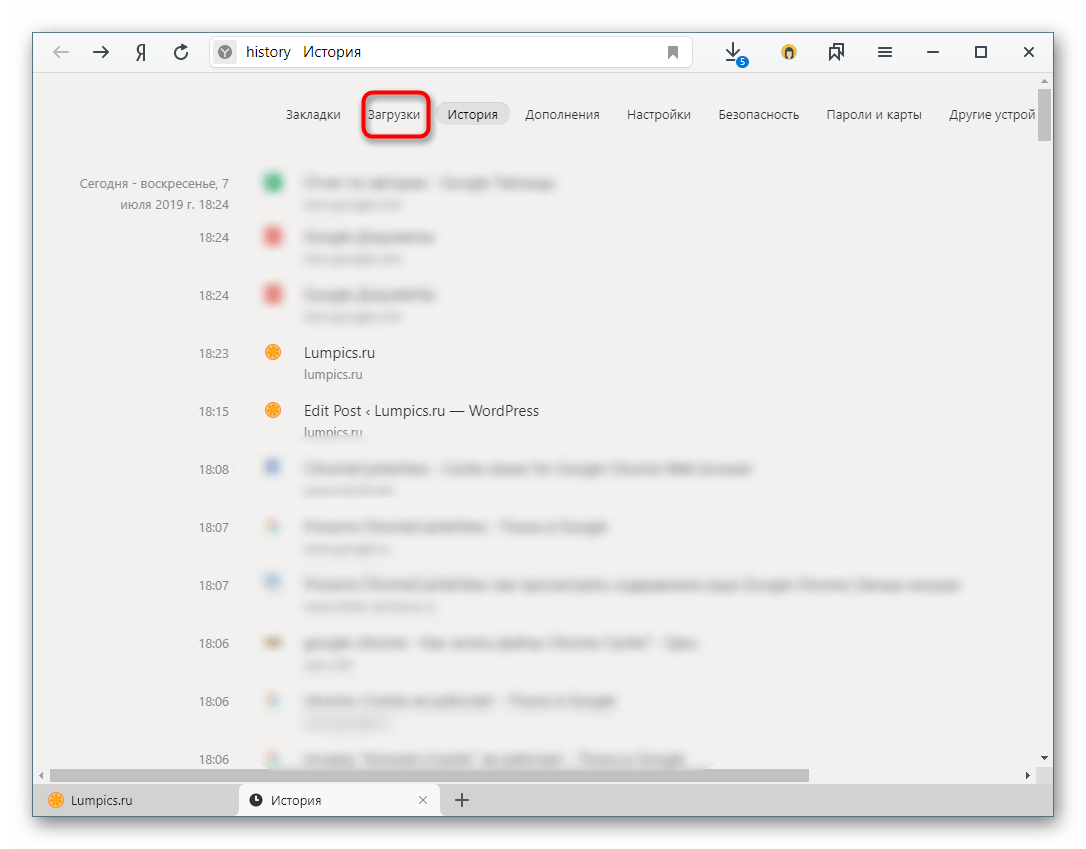 Чтобы просмотреть историю загрузок, вам нужно будет сделать почти то же самое. Стоит сразу отметить, что в мобильной версии этого раздела нет.