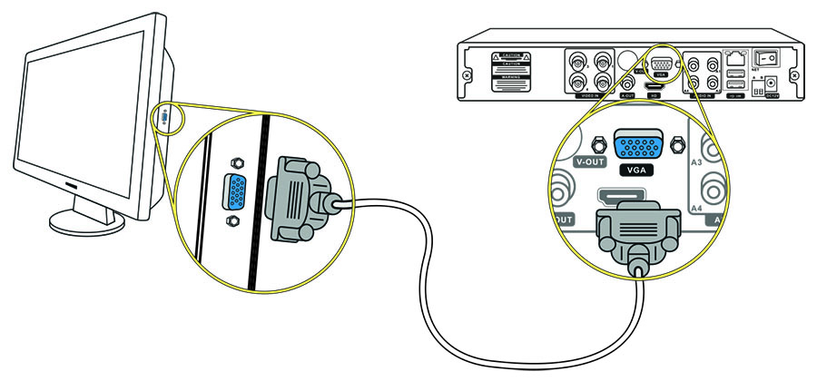 Более новые дисплеи оборудованы цифровыми интерфейсами DVI и HDMI. Для подключения через VGA понадобится только соответствующий кабель и наличие портов на обоих устройствах.