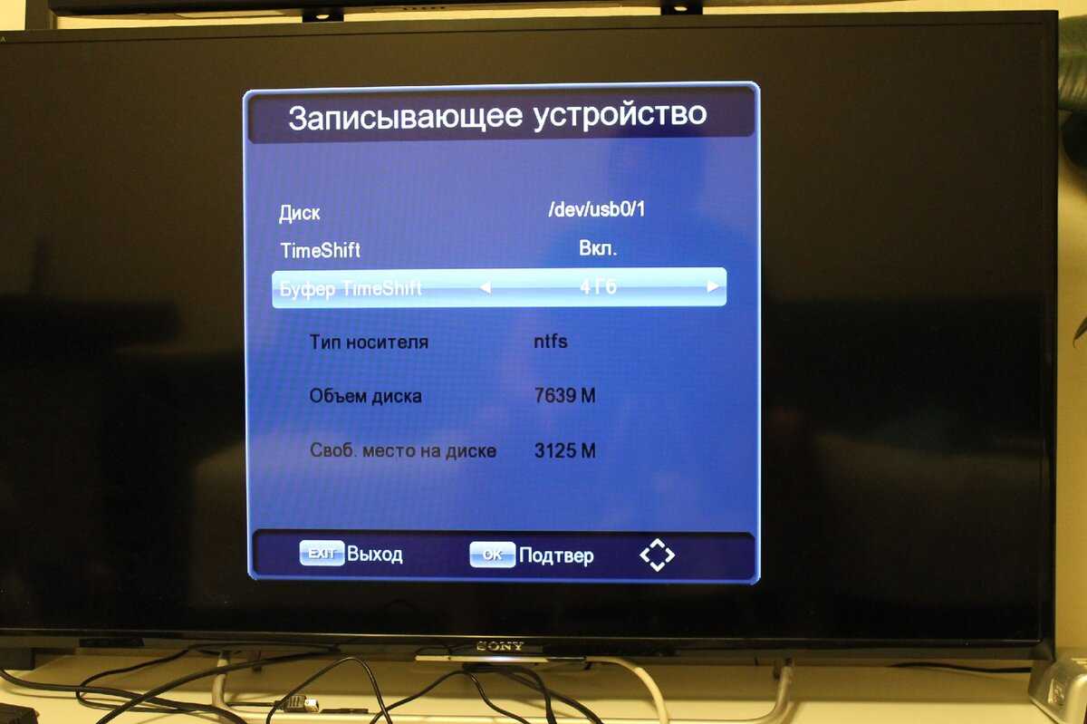 В связи с тем, что после запуска данной функции приставка начинает записывать трансляцию на внешний носитель, объем занимаемой памяти можно настроить. Однако эту опцию поддерживают не все устройства. Чтобы задать максимальный размер файла, который будет отведен под видеоролик, необходимо зайти в меню приставки и выбрать Timeshift. В новом разделе следует установить объем загрузки на внешний носитель.