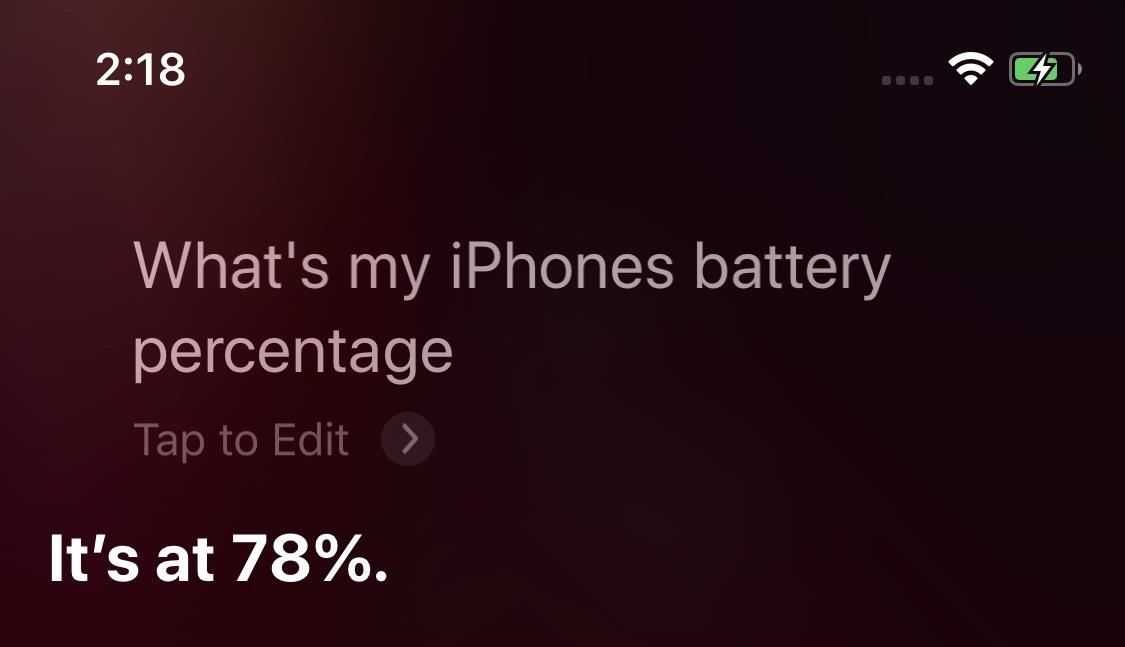 Если вы хотите получить дополнительную обратную связь, попробуйте спросить у Siri «Каков процент заряда батареи моего iPhone». Цифровой помощник с удовольствием расскажет вам, сколько сока у вас осталось.