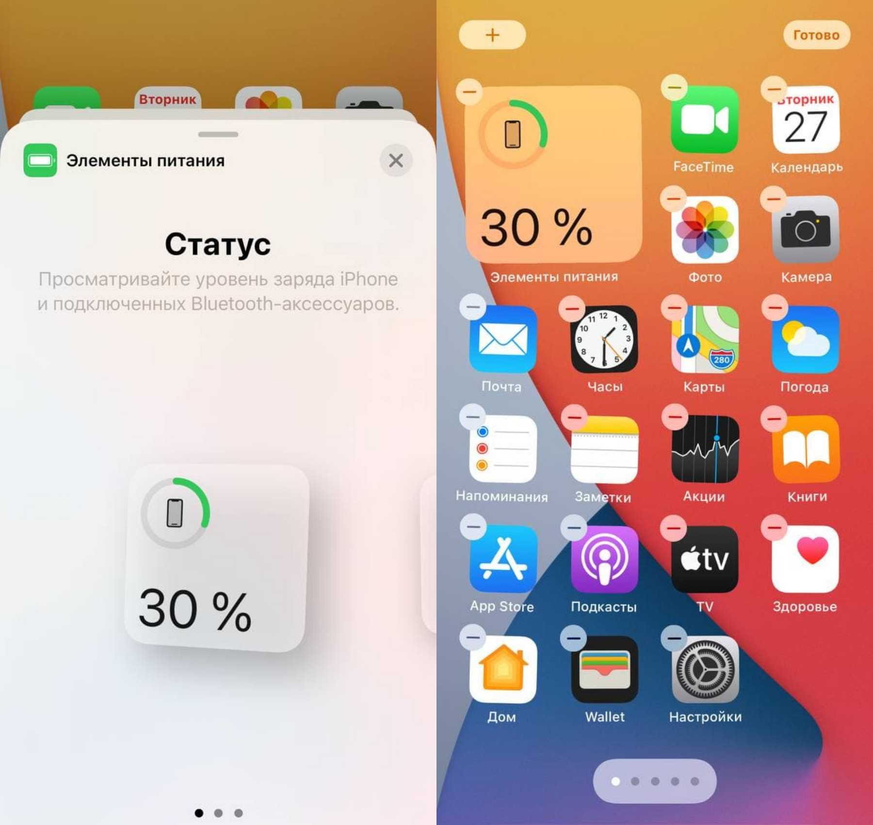 Добавление заряда в процентах на iPhone 12 через виджеты