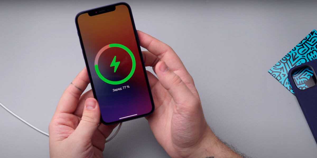 - Заряд в процентах iPhone 12 с помощью зарядного устройства