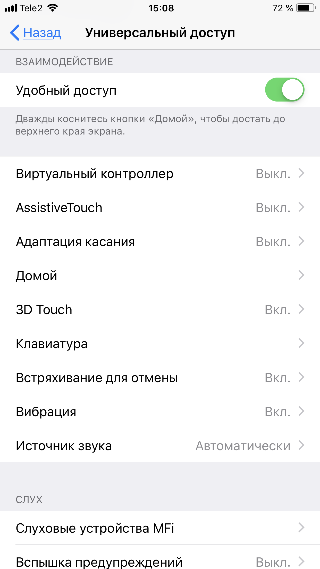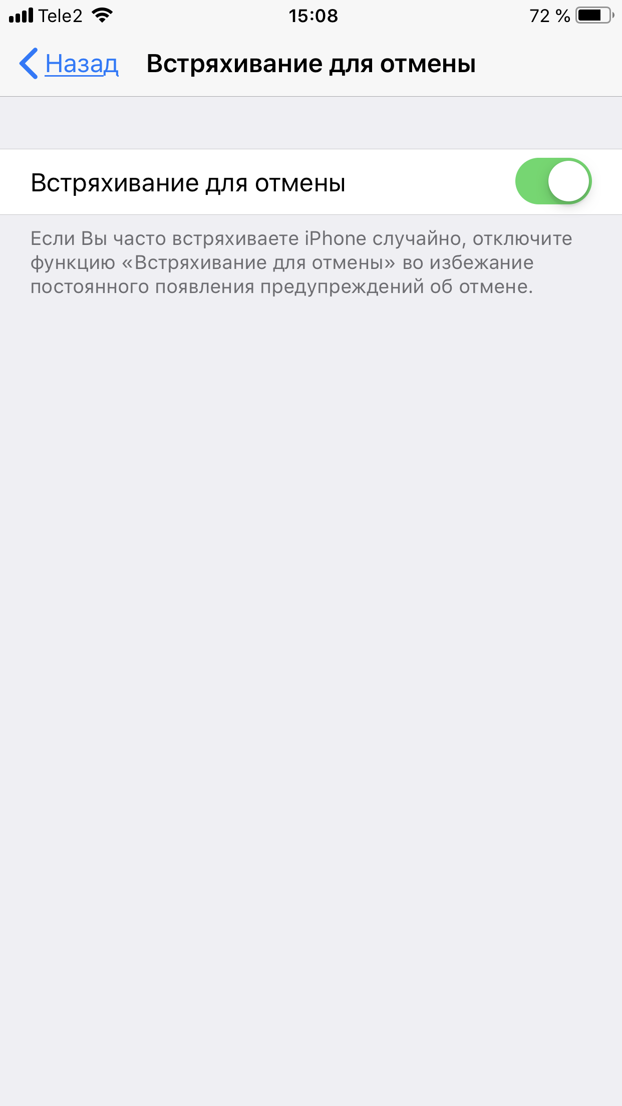 Чтобы включить эту функцию в универсальном доступе, нужно найти функцию «Встряхивание для отмены»: