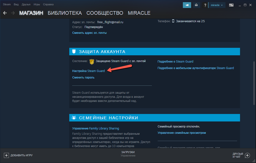 Выберите пункт Steam Guard.