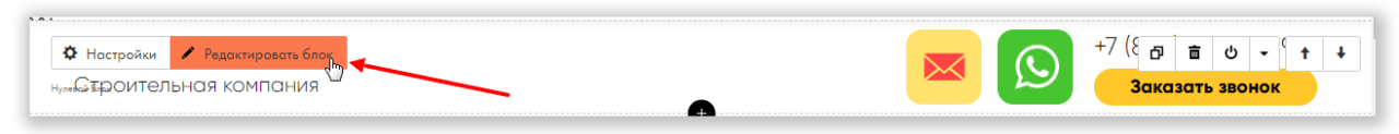 Для этого сперва потребуется перейти в раздел редактирования блока. Делается это нажатием на кнопку «Редактировать блок», которая находится в конструкторе необходимой страницы.