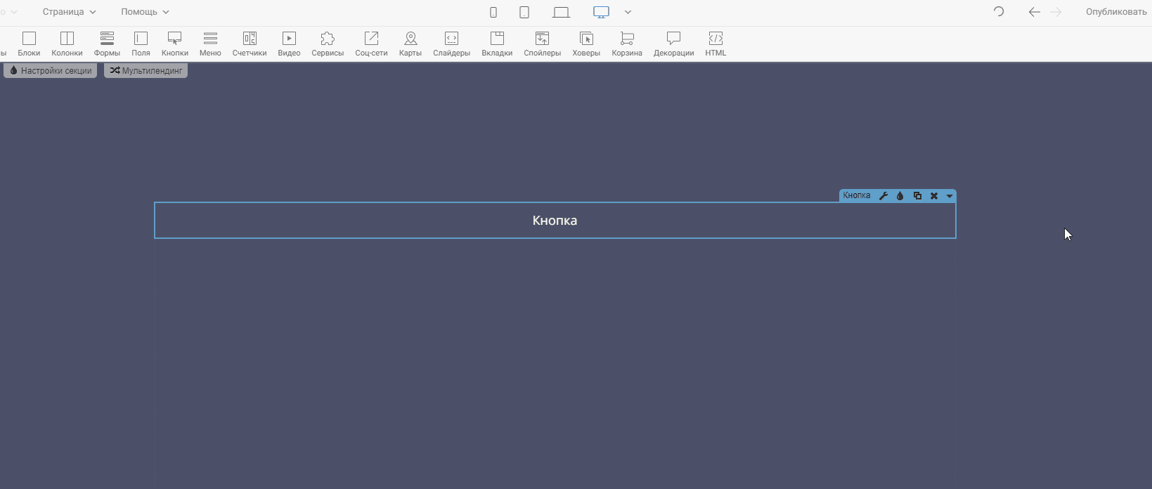 - Готовые изменения нужно сохранить, а после можно публиковать страницу.