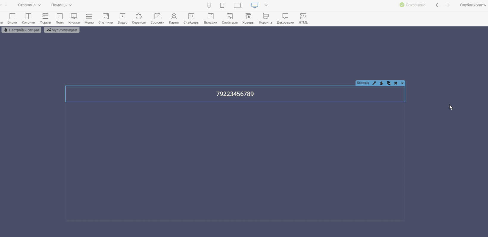 Шаг 5. Публикуем страницу и всё готово! Чтобы протестировать кликабельность телефона, зайдите в предпросмотр или на опубликованную версию страницы.