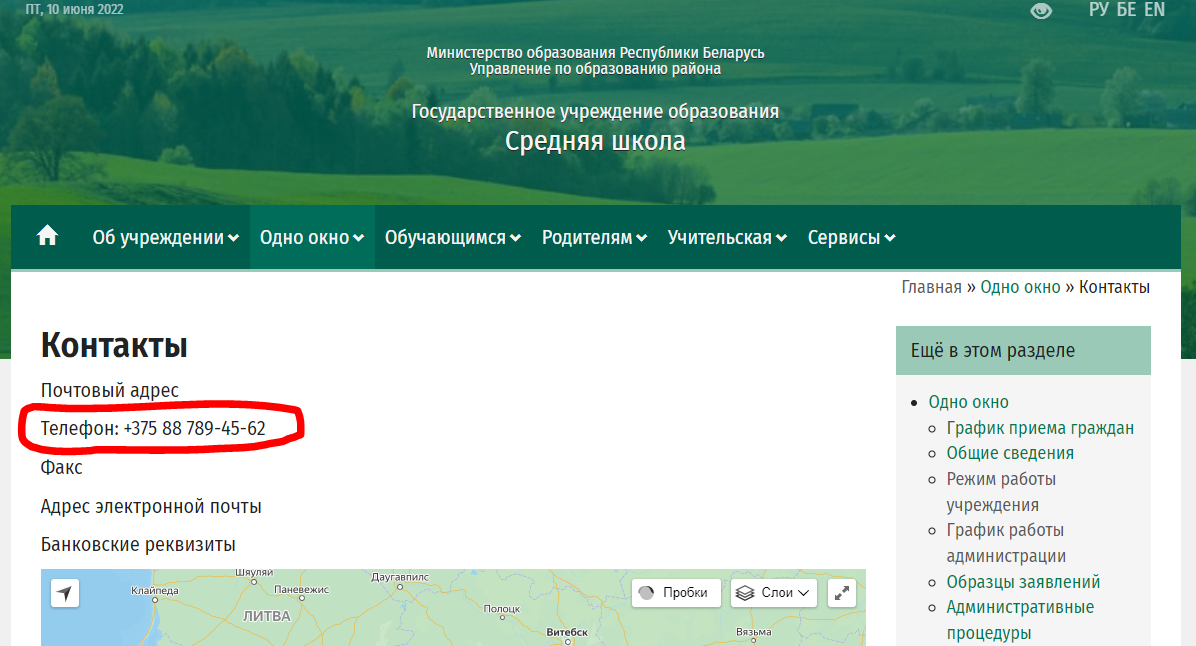 Если посмотреть карту сайта, то на области телефона скорее всего будут клики. На сайте PR-CY не предусмотрен телефон, поэтому приведем пример из выдачи Яндекса: