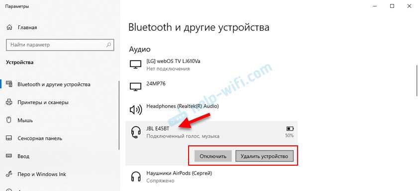 У многих возникают проблемы с подключением наушников к другому устройству. Или, например, проблема с рассинхронизацией наушников (когда речь идет о раздельных TWS наушниках). Поэтому нужно просто отключить наушники в настройках устройства, или же полностью удалить их (разорвать сопряжение). Чтобы тот же телефон, или ноутбук «забыл» наушники. Не зависимо от устройства, в настройках Bluetooth выбрав подключенные наушники есть две настройки: