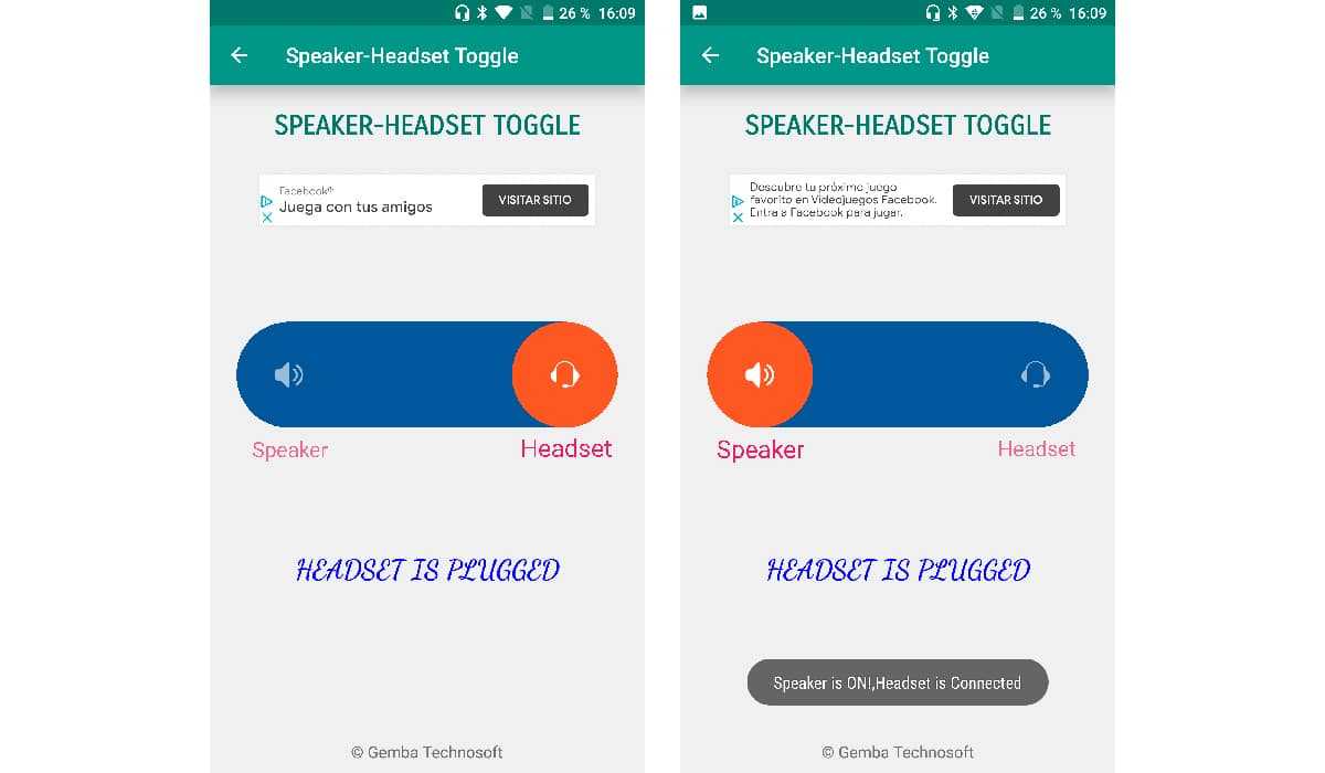 Приложение представляет собой переключатель громкоговорителей гарнитуры и переключатель тестирования, приложение, доступное для вашего и он содержит большое количество рекламы, однако, поскольку он выполняет то, что обещает, и нам нужно использовать его только один раз, это лучше, чем неспособность решить проблему.