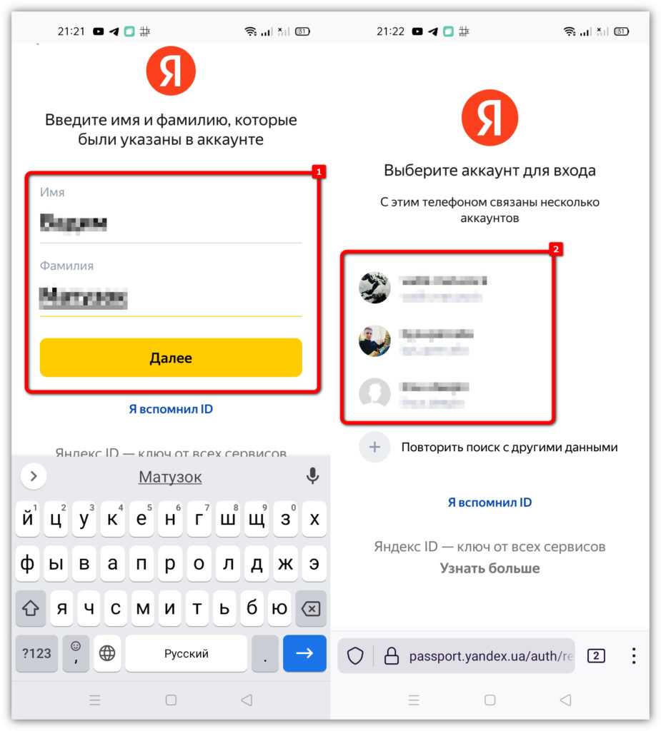 - Если телефон был добавлен сразу к нескольким профилям почтового сервиса, выбрать желаемый для восстановления.